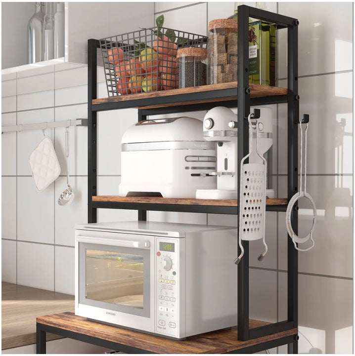 CJMM 4段本棚 引き出し木製キッチン棚 金属収納棚 リビングキッチン幅約74×奥行き約29×高さ約150cm ダーク色…
