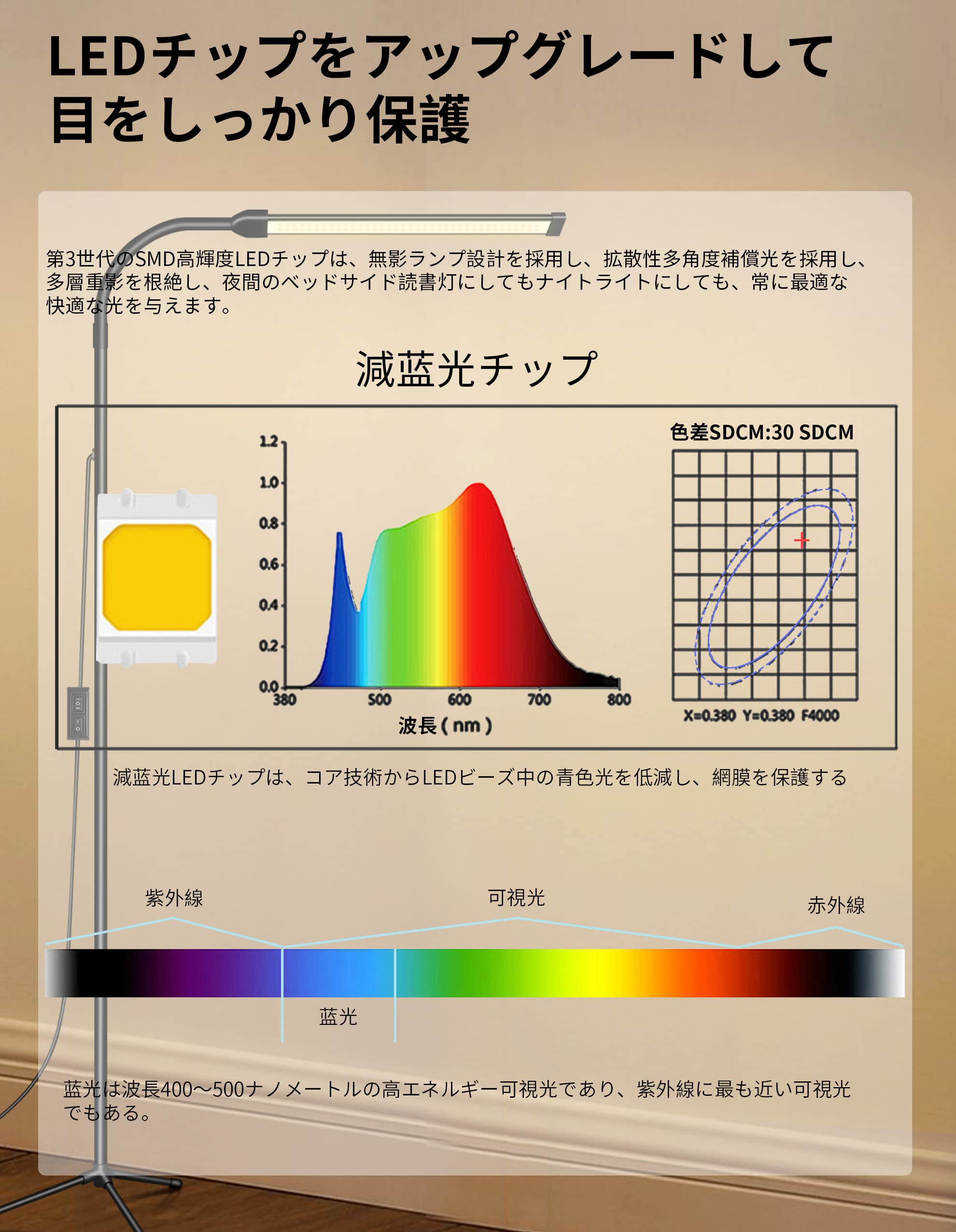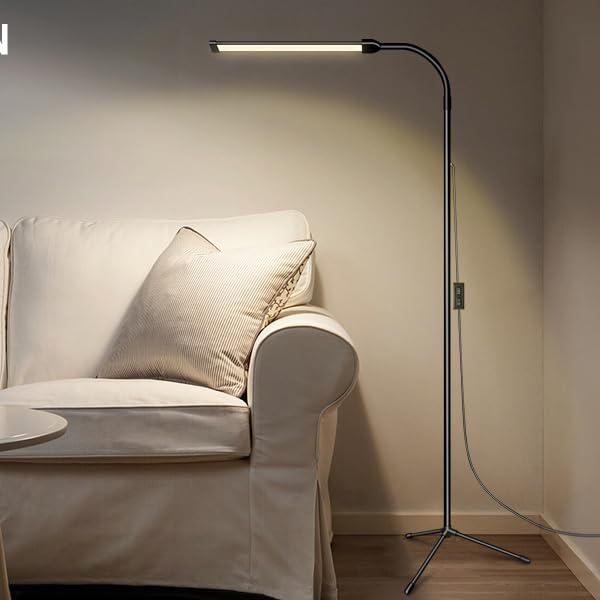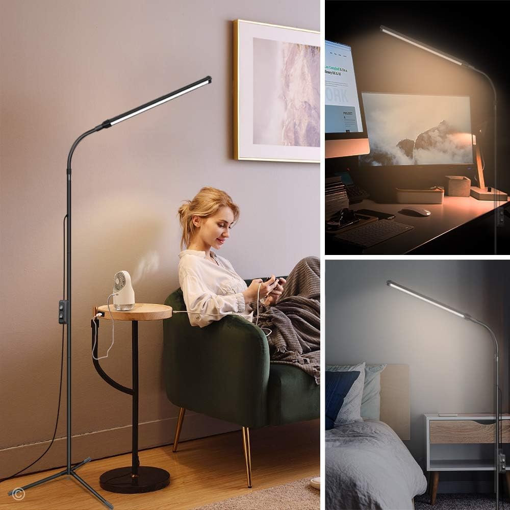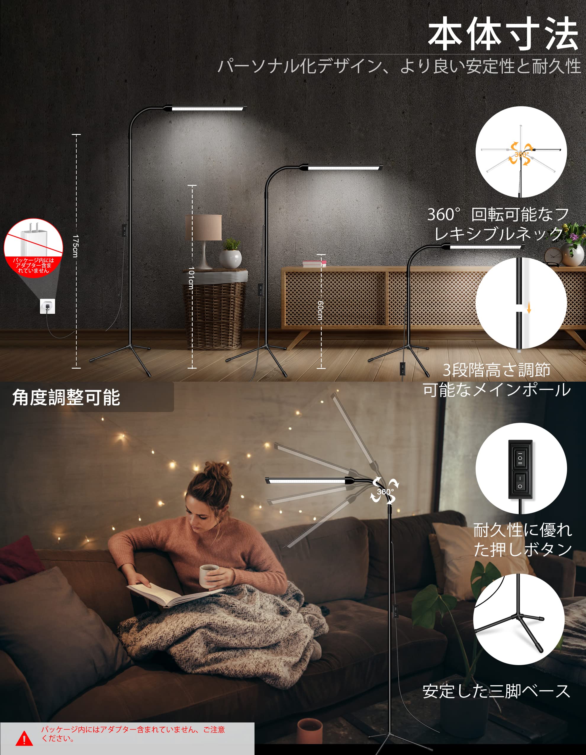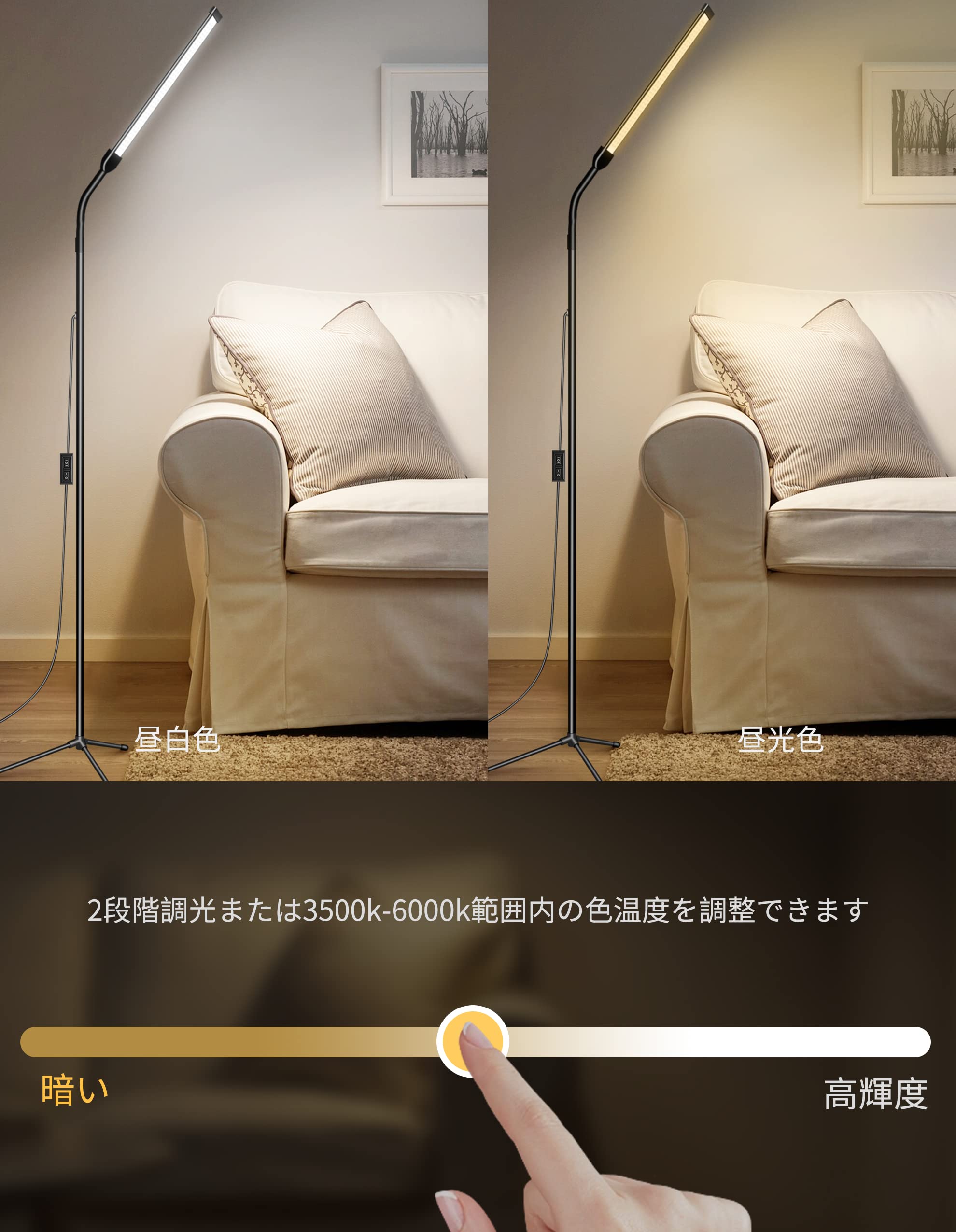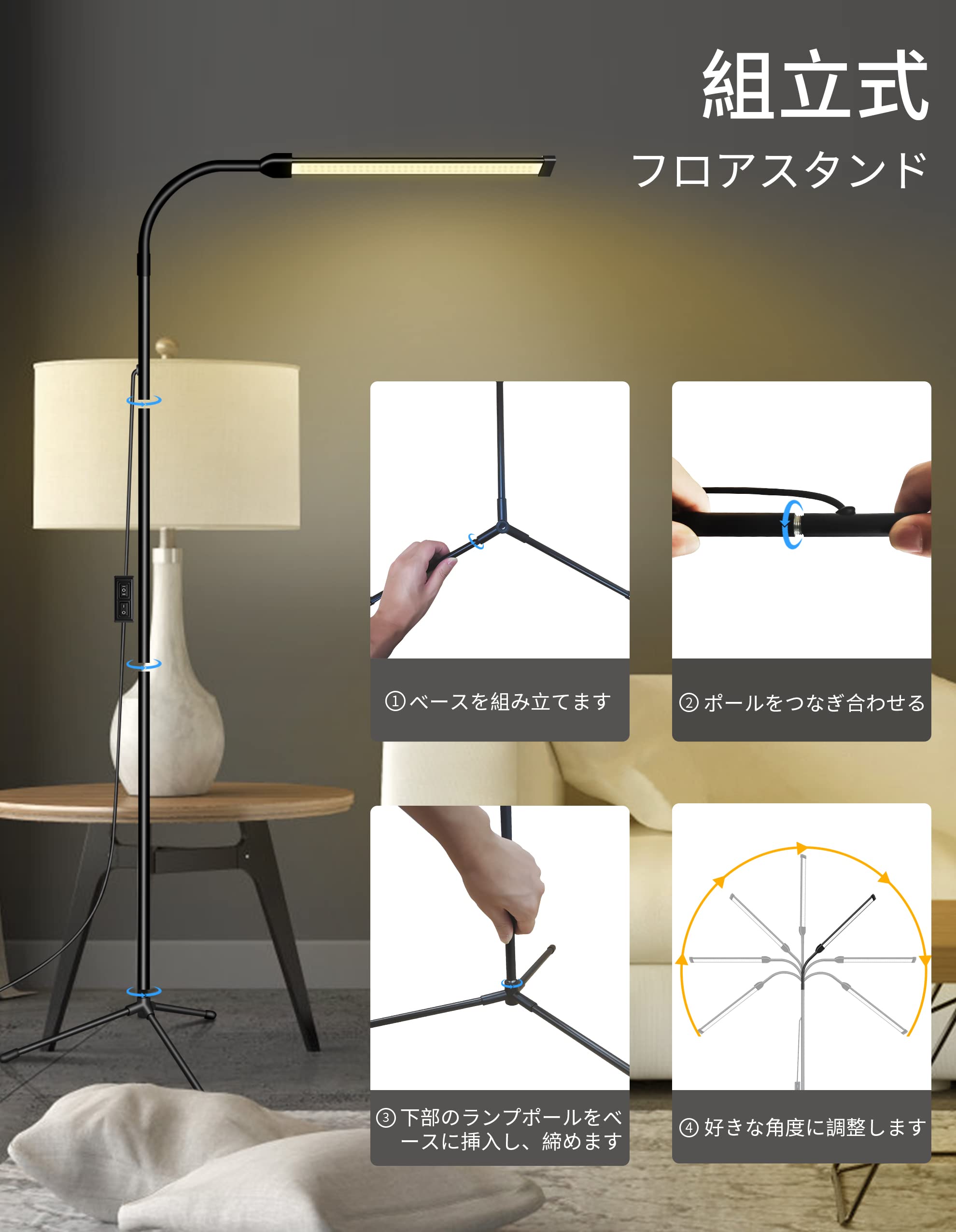 Bamouskon フロアランプ led スタンドライト フロアライト おしゃれ 屋内照明 高輝度 調光調色 2色温度 2段階明るさ調整 360°調整可 組立式 USB給電 広範囲を照射 照明スタンド 優しい光 明るい 持ち運び便利 リビング 寝室用 勉強 仕事 読書灯 目に優しい 間接照明 ブラック