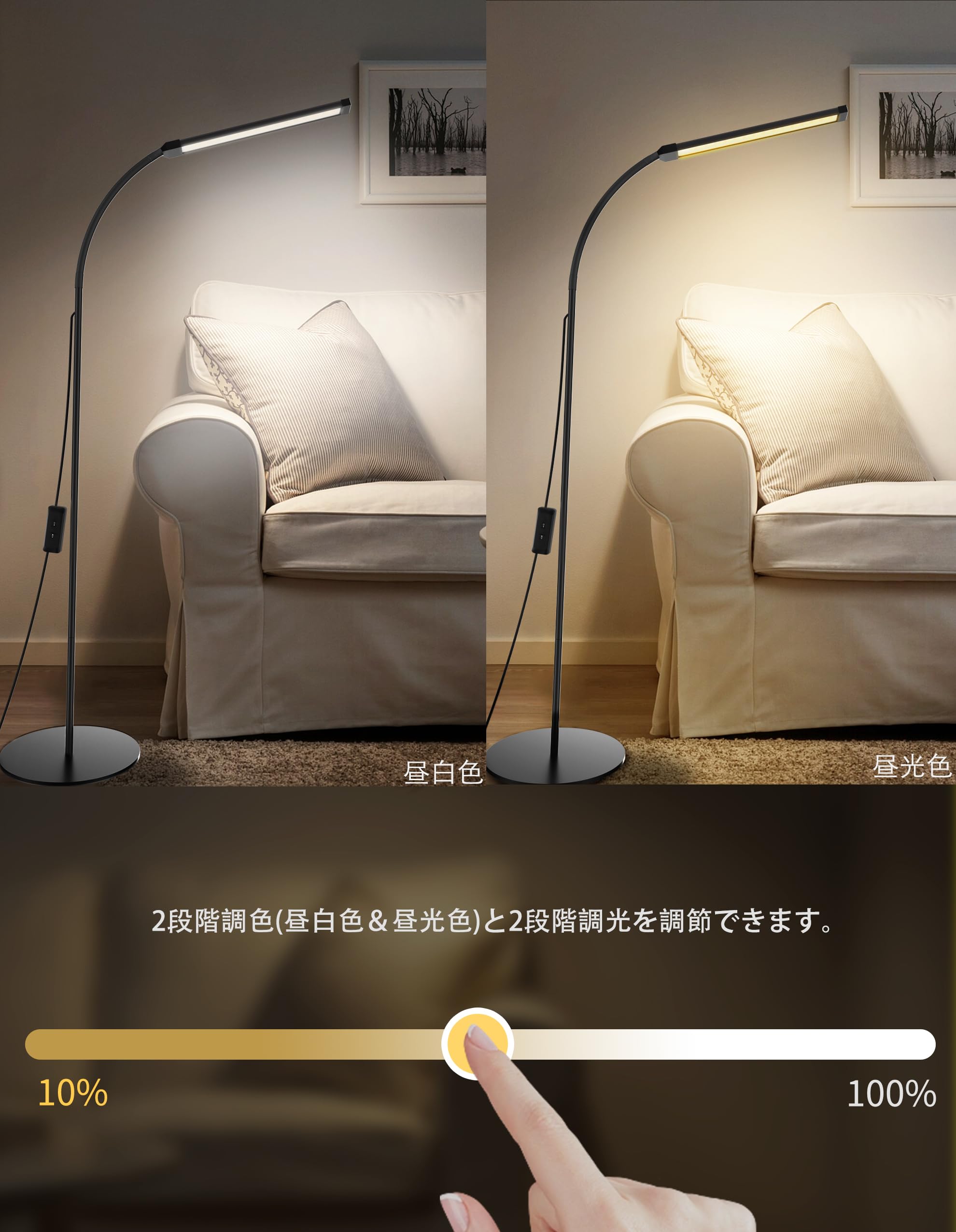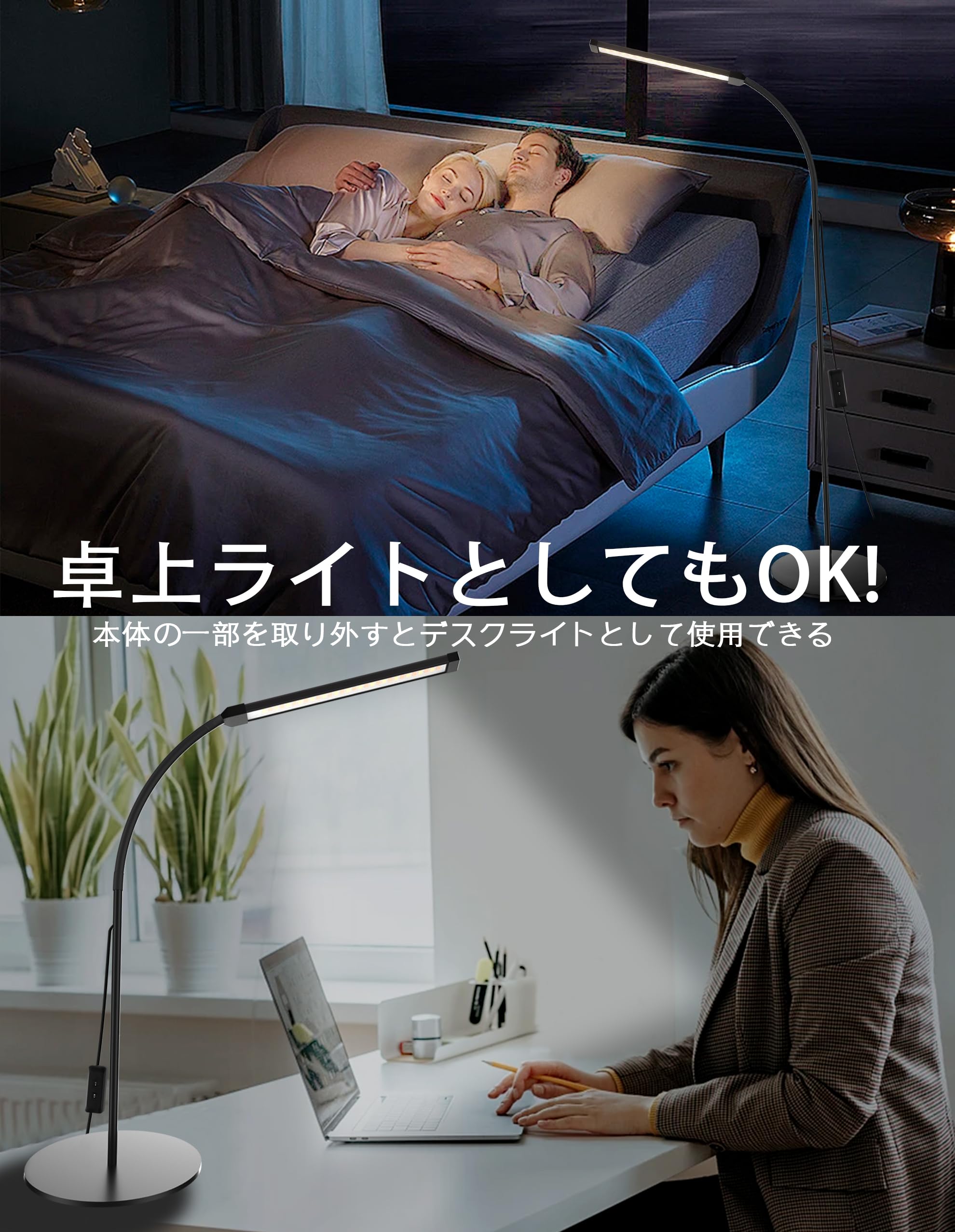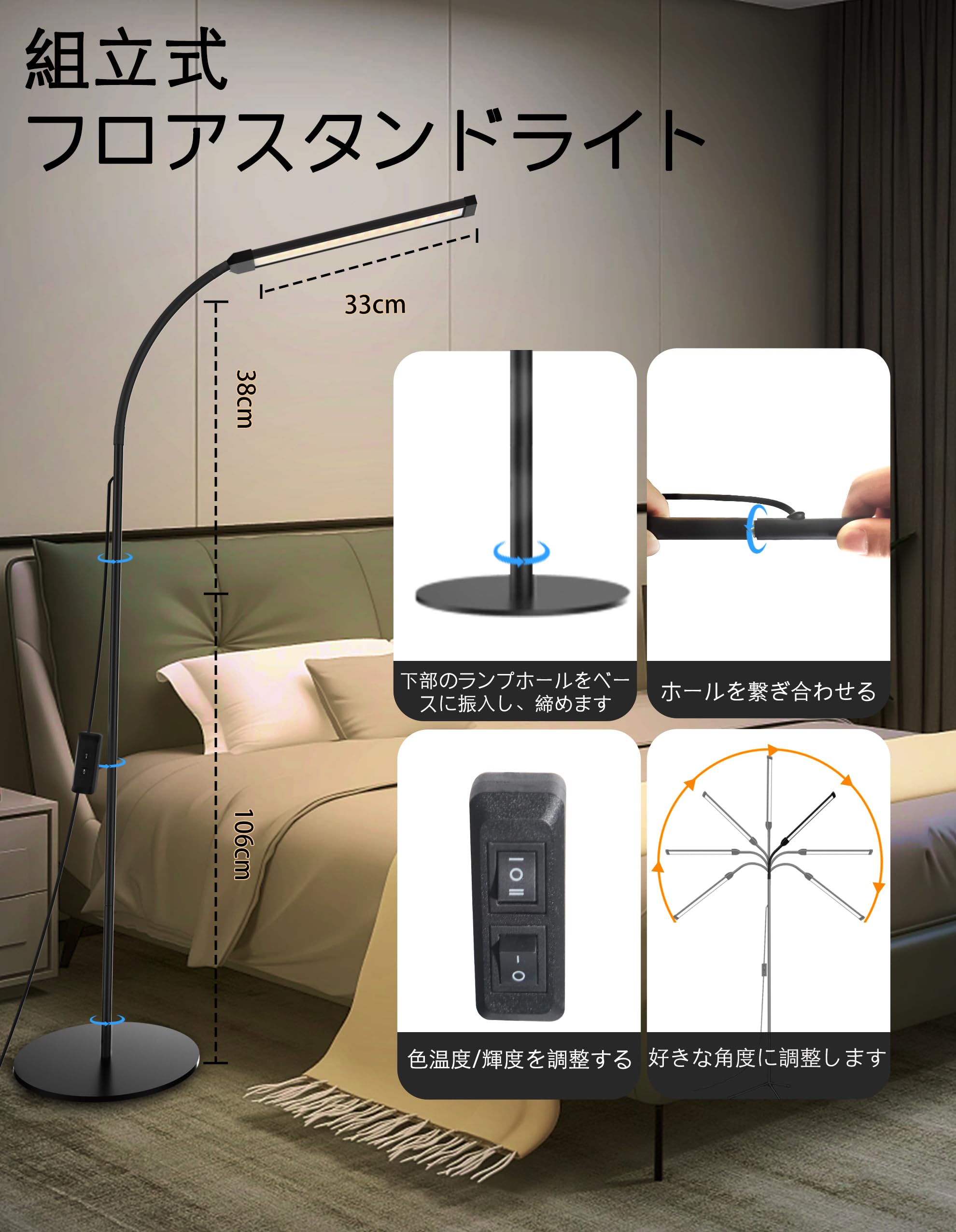 Bamouskon フロアランプ led スタンドライト フロアライト まつげLEDフロアライト USB給電 おしゃれ 屋内照明 高輝度 2色温度 2段階明るさ調整 優しい光 明るい リビング 寝室用 読書灯 間接照明 ブラック (円形ベース)