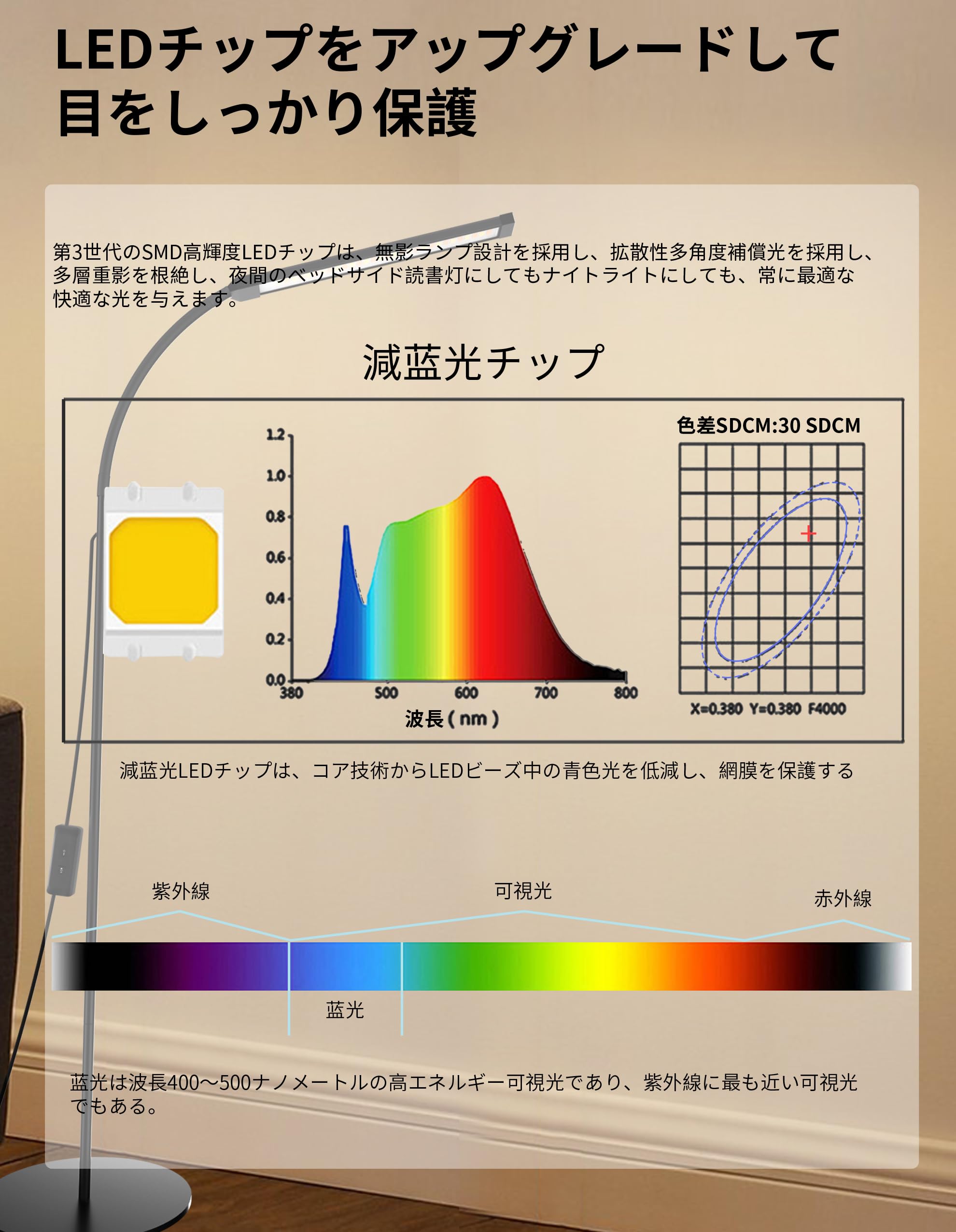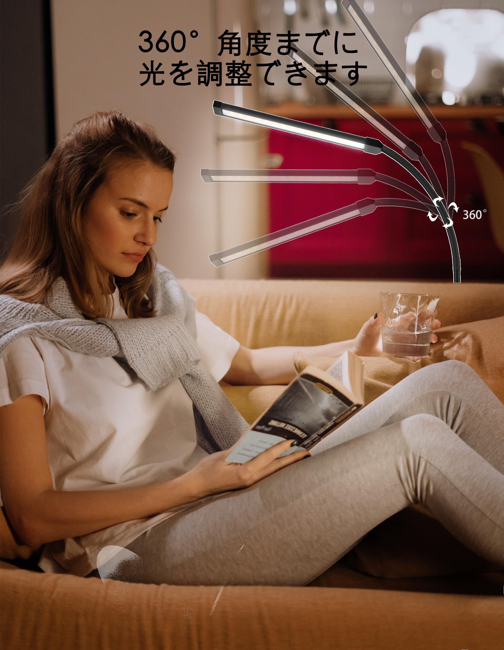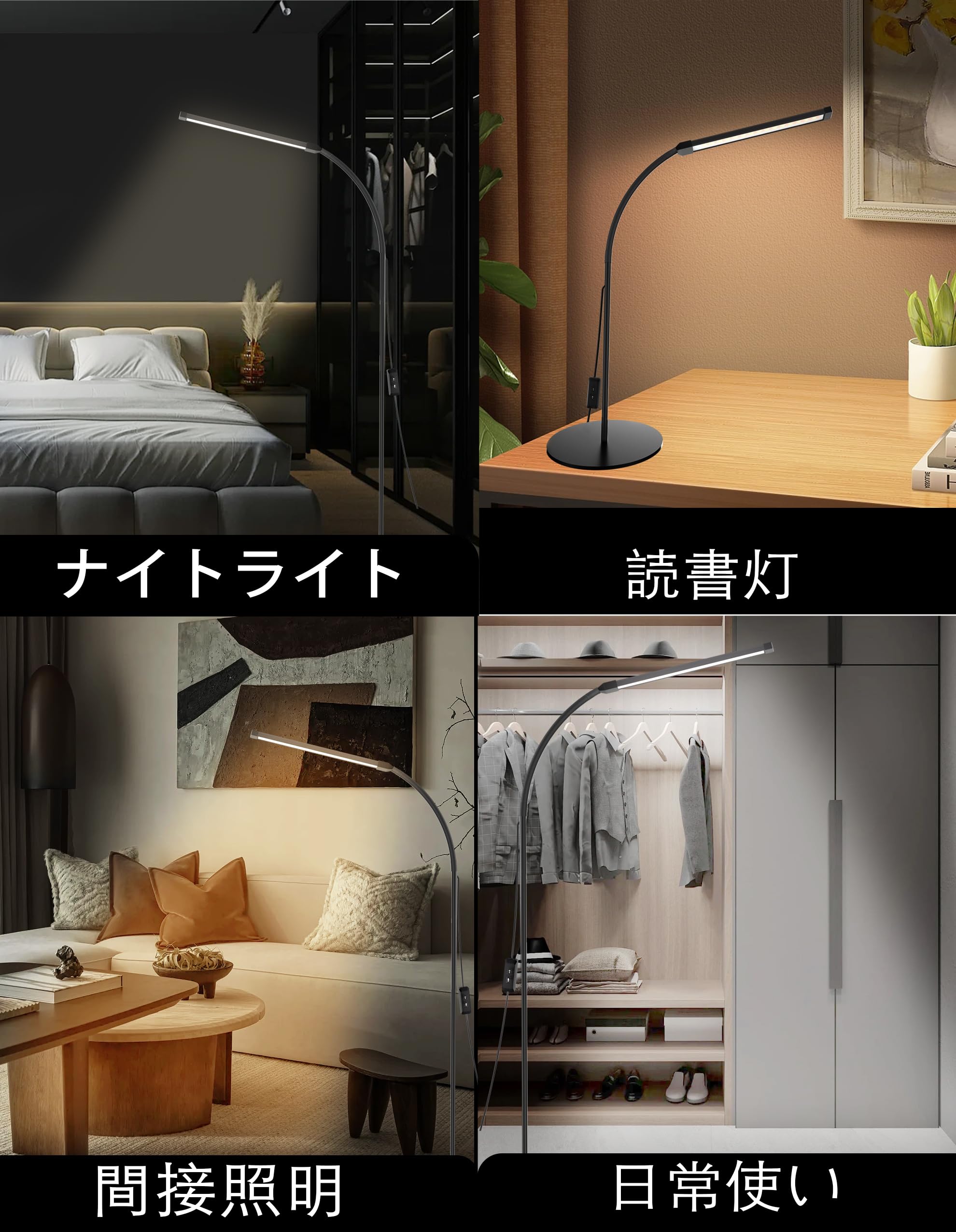 Bamouskon フロアランプ led スタンドライト フロアライト まつげLEDフロアライト USB給電 おしゃれ 屋内照明 高輝度 2色温度 2段階明るさ調整 優しい光 明るい リビング 寝室用 読書灯 間接照明 ブラック (円形ベース)